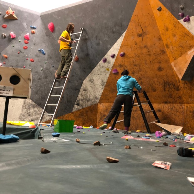 Kisavalmistelujen takia kiipeilykeskus on nyt pari päivää kiinni ja maanantaina pääsee asiakkaat ensimmäistä kertaa laajennukseen temmeltämään.