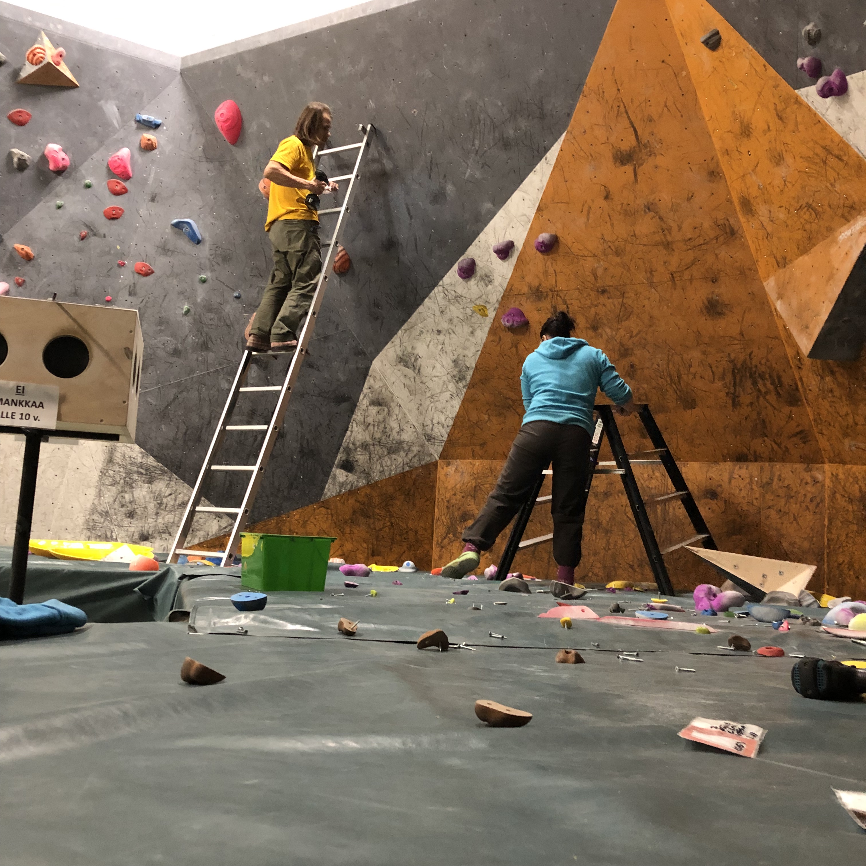 Kisavalmistelujen takia kiipeilykeskus on nyt pari päivää kiinni ja maanantaina pääsee asiakkaat ensimmäistä kertaa laajennukseen temmeltämään.